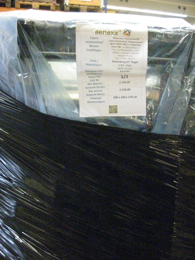 28.11.16 Очередная отгрузка для нашего постаянного клиента из города Саратова, на этот раз в путь отправляется Heidelberg GT Tiegel с функцией тиснения золотом.