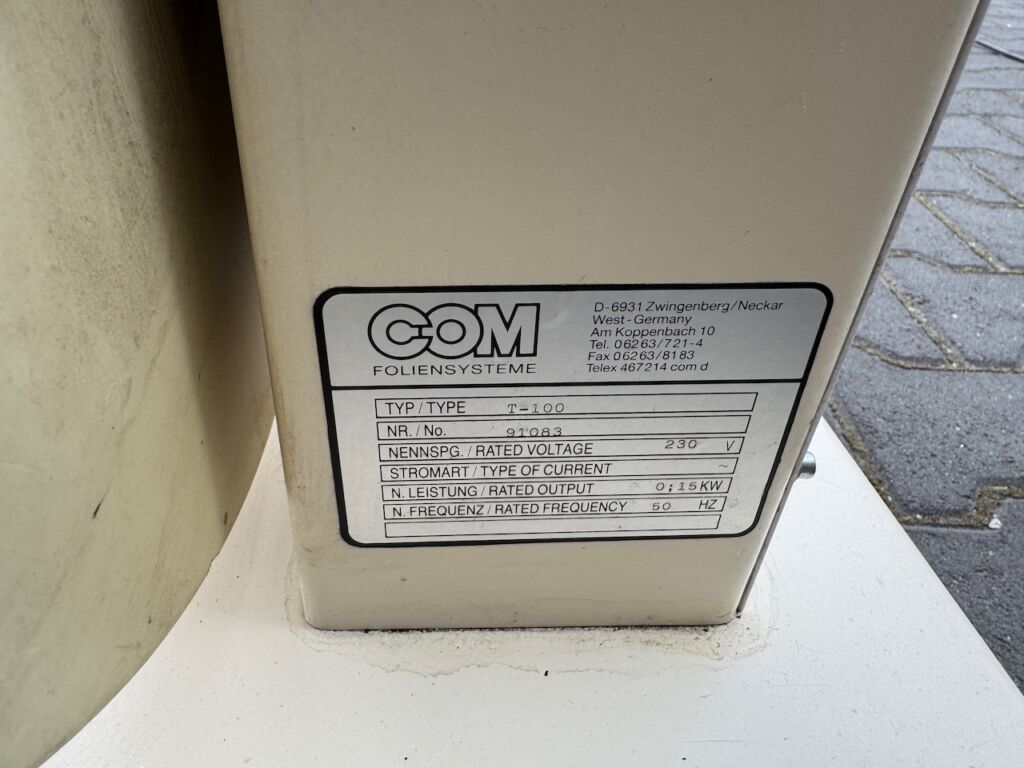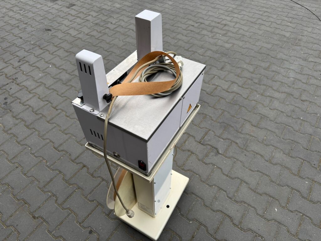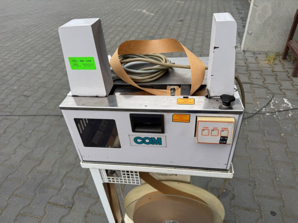 Table banding machine for narrow bands COM T-100 with base frame for large rolls