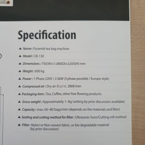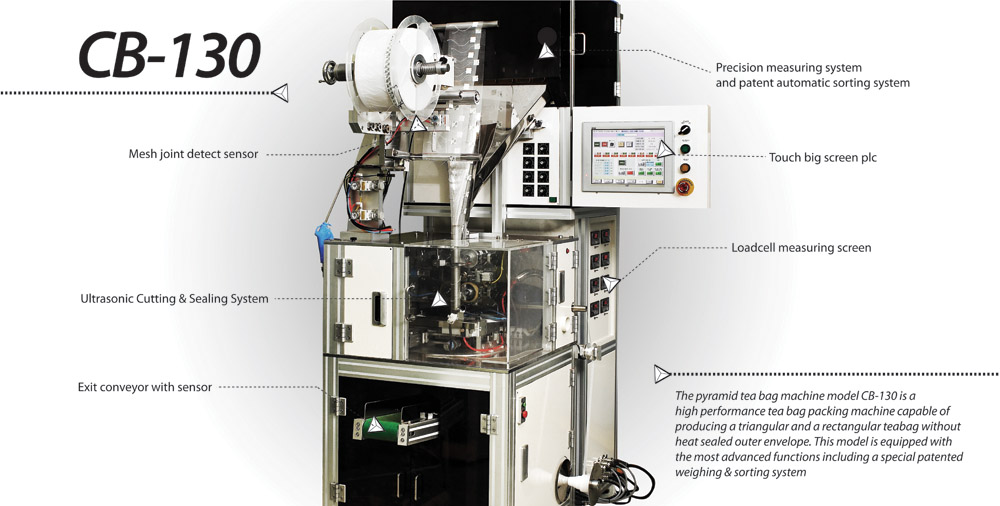 The pyramid tea bag machine model CB-130 is a