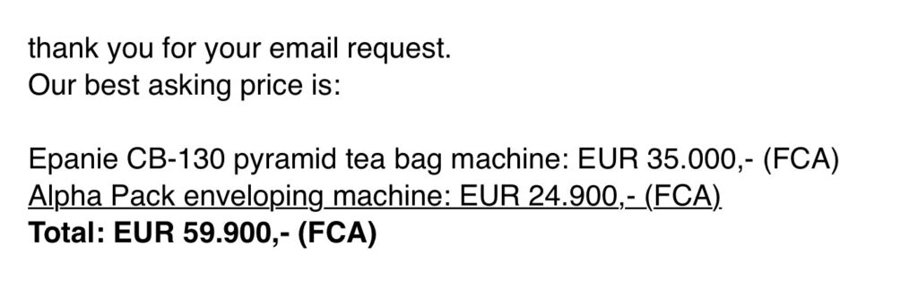 • Packaging item : Tea, Coffee, other free flowing products