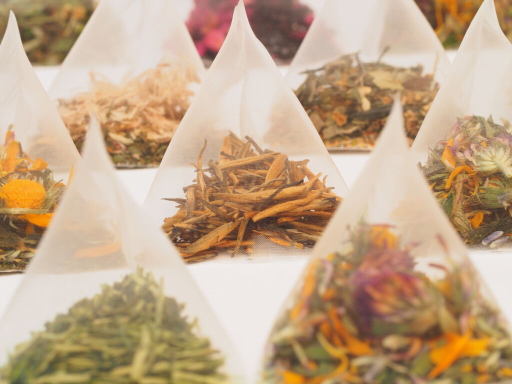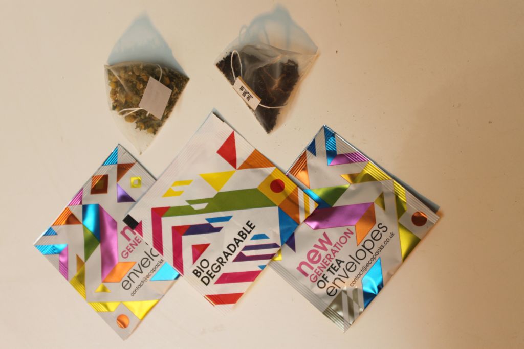 producing a triangular and a rectangular teabag without