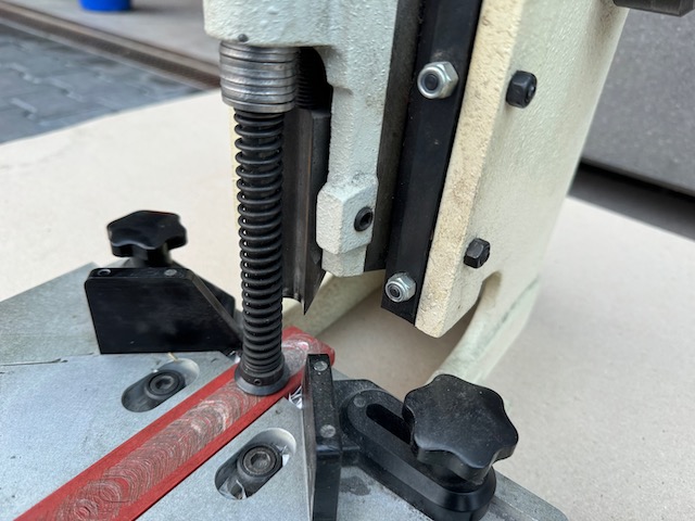 Cutting accuracy is ensured by prismatic guides and the spring-loaded clamping devices which holds the material to be worked.